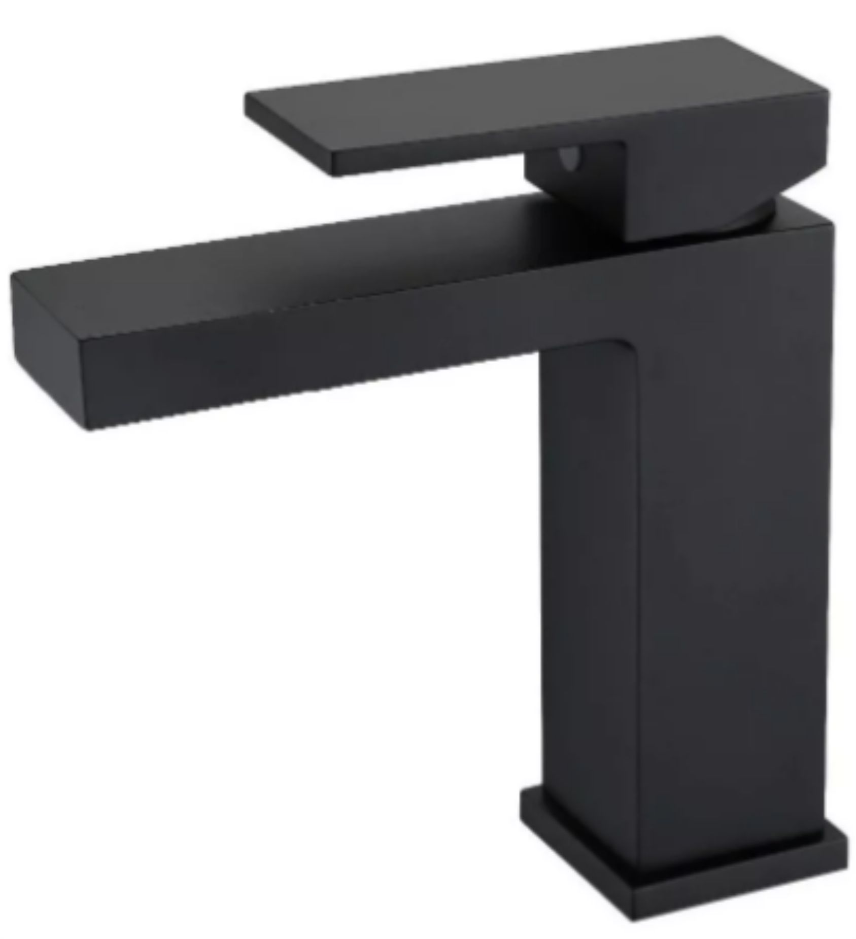 1 Torneira Misturador Monocomando Quadrada Lavatório - Baixa PretoFosco;